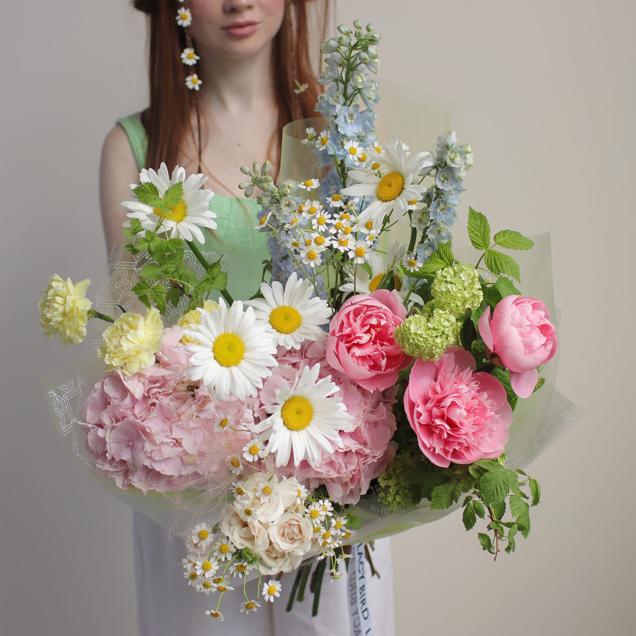 We pack bouquets in stylish branded boxes with lids for all weather protection (heat, cold, wind or rain - order a bouquet no matter the weather!). We also include instructions on how to care for a bouquet and a product to prolong the life of flowers.