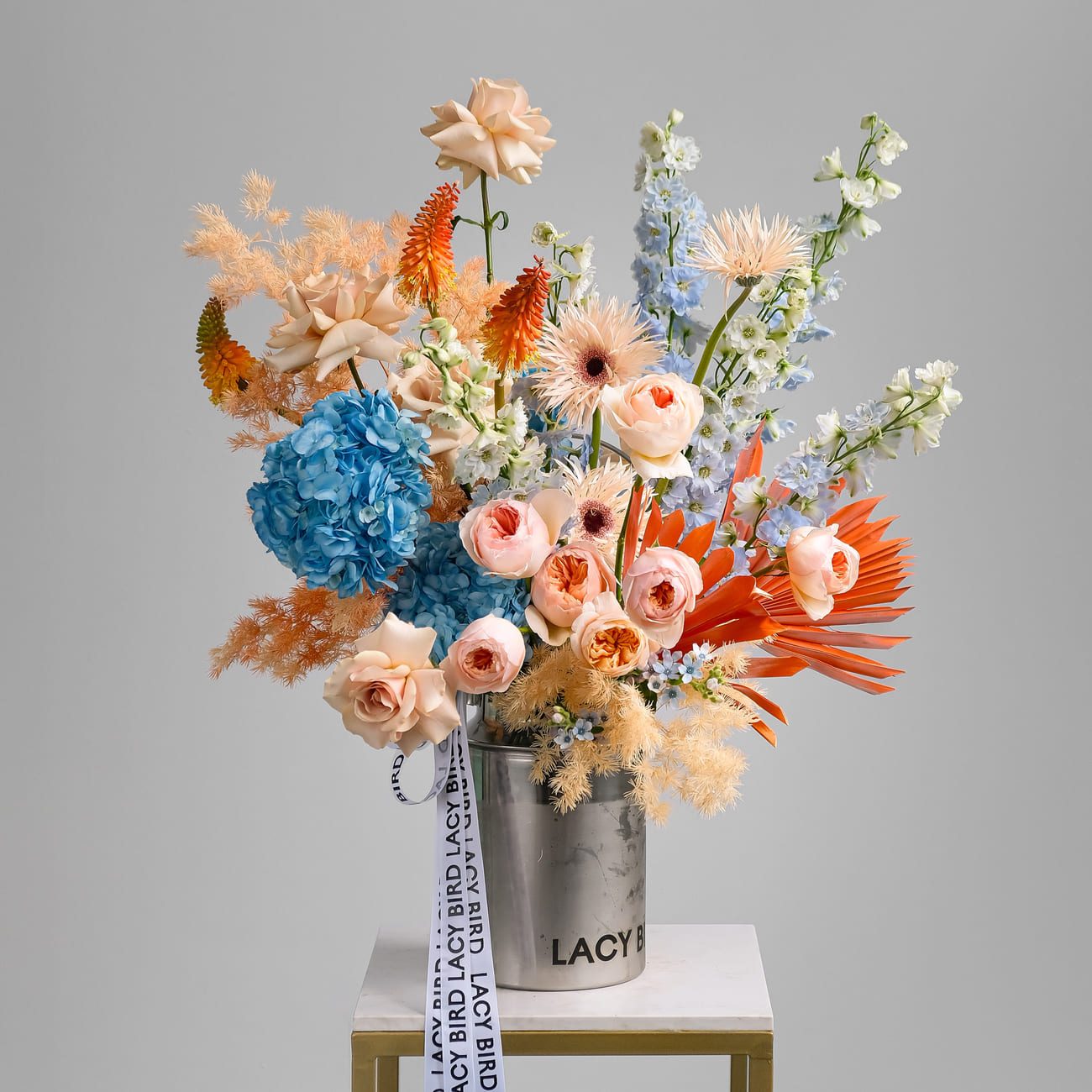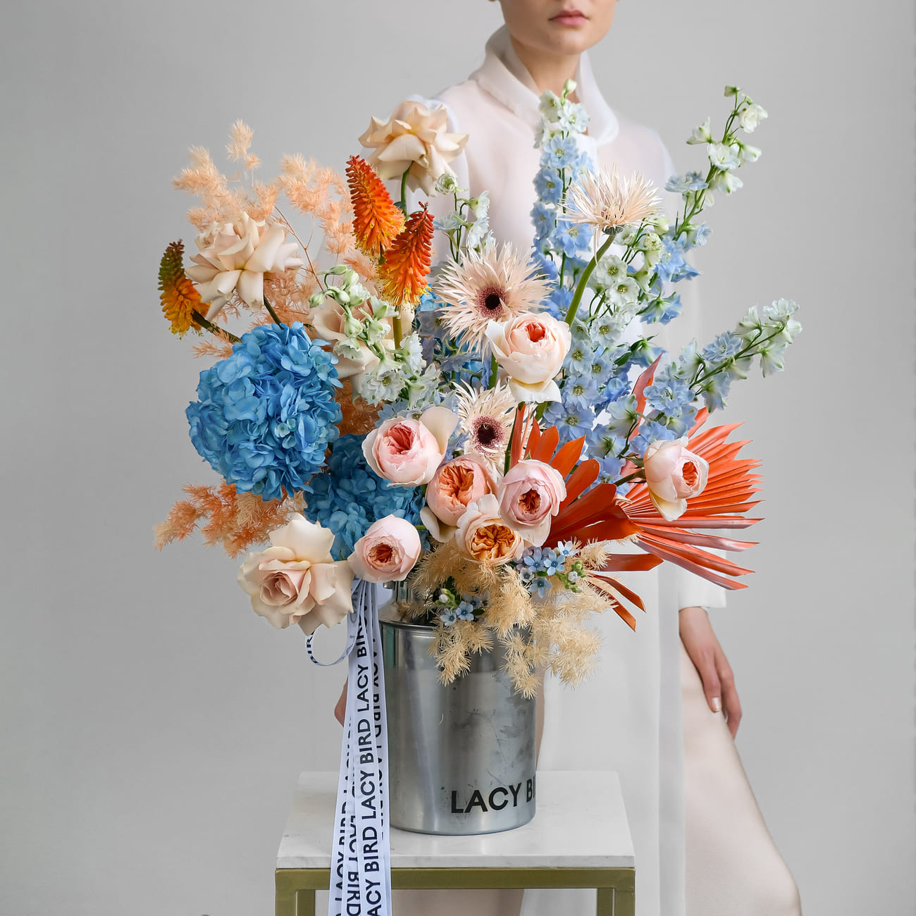 The fresh flowers from Lacy Bird are delivered in original packaging. Remove the packaging and place the flowers in a vase. We recommend not cutting the ribbon tying the flowers to keep the shape of the bouquet.