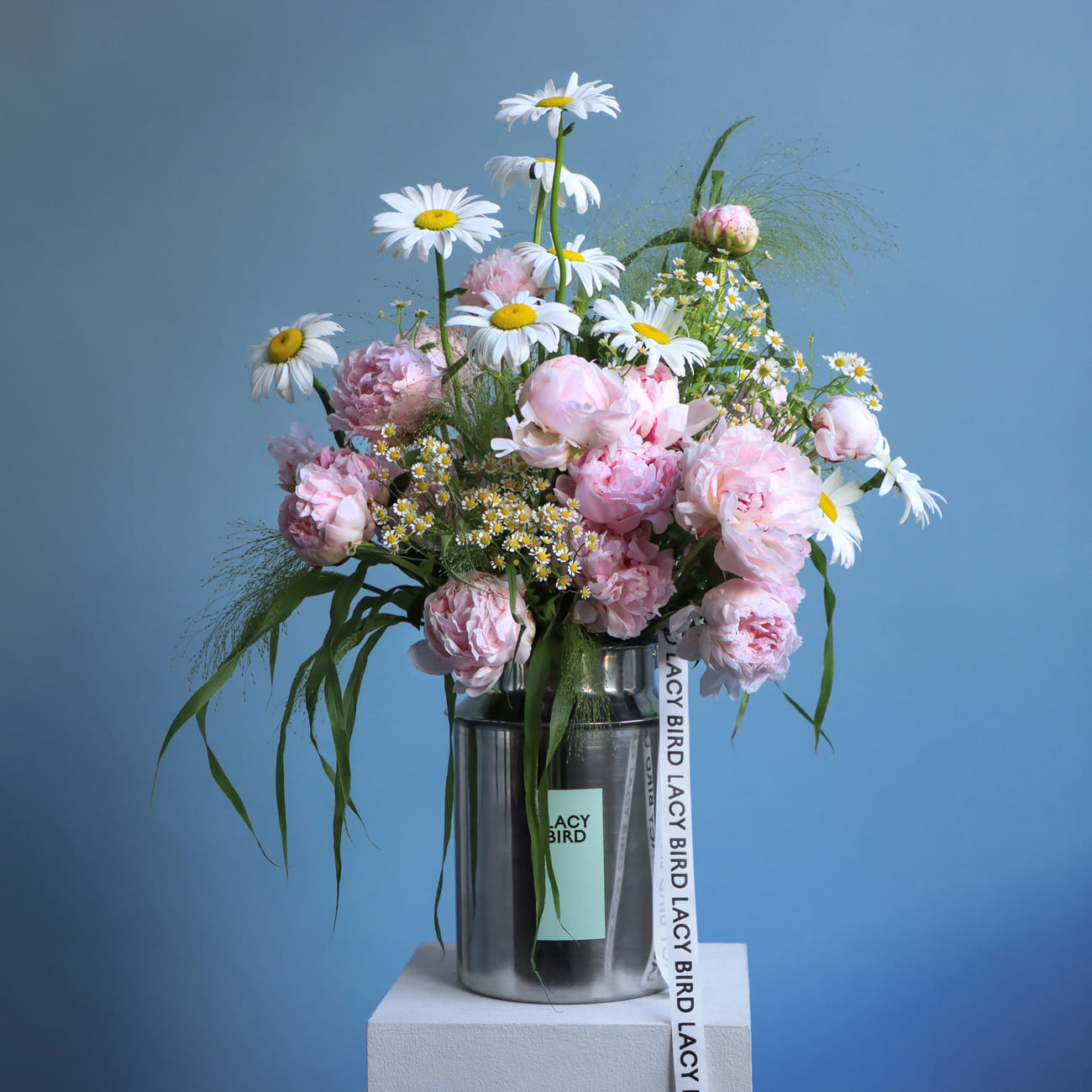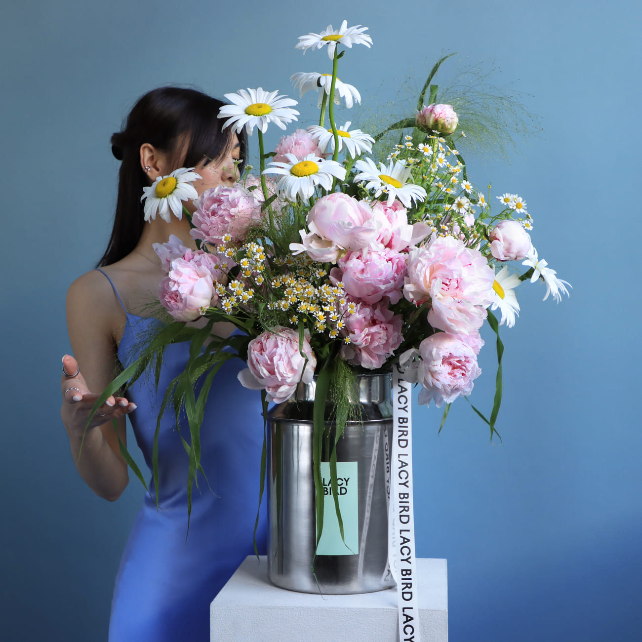 The fresh flowers from Lacy Bird are delivered in original packaging. Remove the packaging and place the flowers in a vase. We recommend not cutting the ribbon tying the flowers to keep the shape of the bouquet.