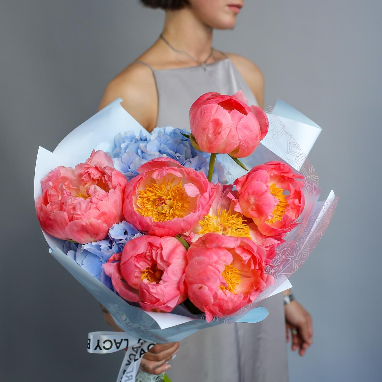 Peonies “Coral Charm” and Hydrangea Bouquet