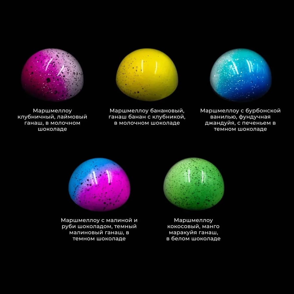 Маршмеллоу банановый, ганаш банан с клубникой, в молочном шоколаде