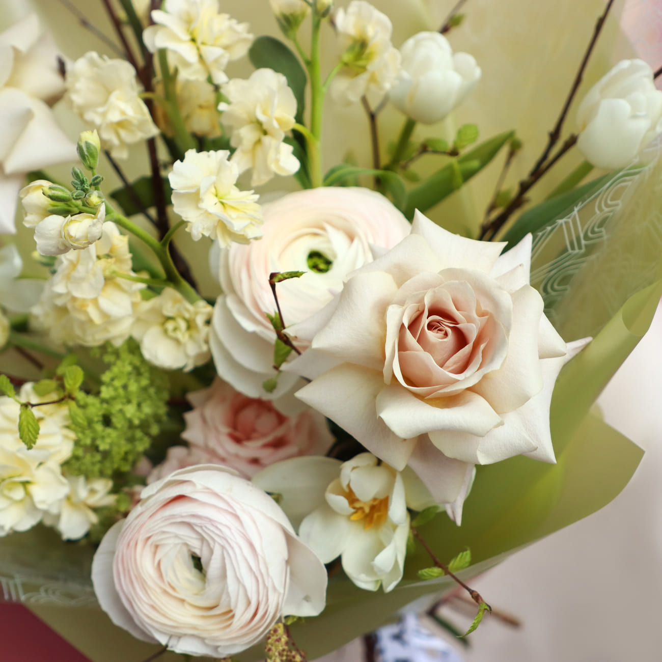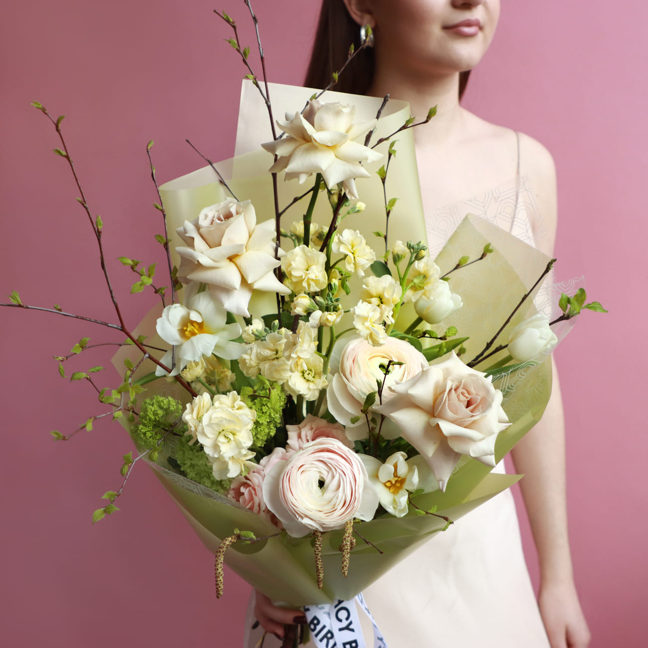 We pack bouquets in stylish branded boxes with lids for all weather protection (heat, cold, wind or rain - order a bouquet no matter the weather!). We also include instructions on how to care for a bouquet and a product to prolong the life of flowers.