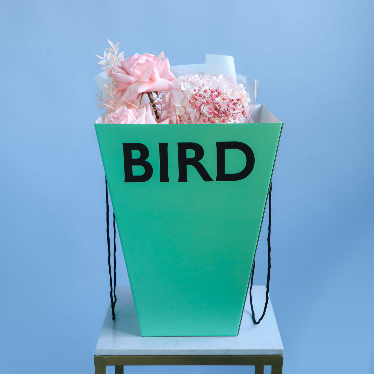 We pack bouquets in stylish branded boxes with lids for all weather protection (heat, cold, wind or rain - order a bouquet no matter the weather!). We also include instructions on how to care for a bouquet and a product to prolong the life of flowers.