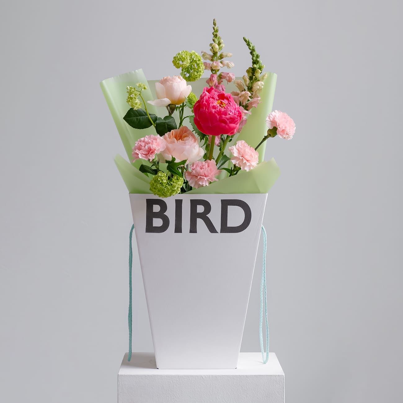 We pack bouquets in stylish branded boxes with lids for all weather protection (heat, cold, wind or rain - order a bouquet no matter the weather!). We also include instructions on how to care for a bouquet and a product to prolong the life of flowers.