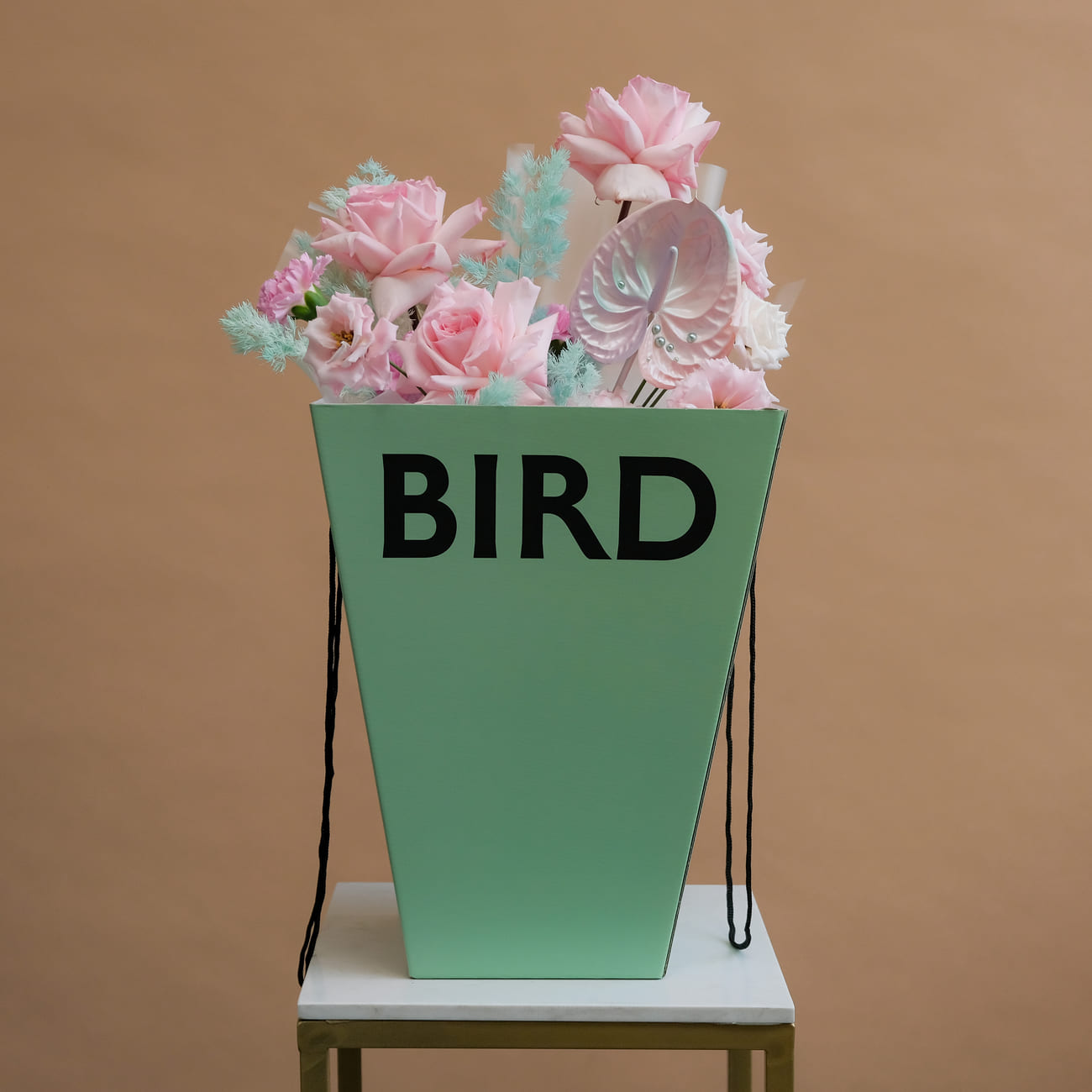 We pack bouquets in stylish branded boxes with lids for all weather protection (heat, cold, wind or rain - order a bouquet no matter the weather!). We also include instructions on how to care for a bouquet and a product to prolong the life of flowers.
