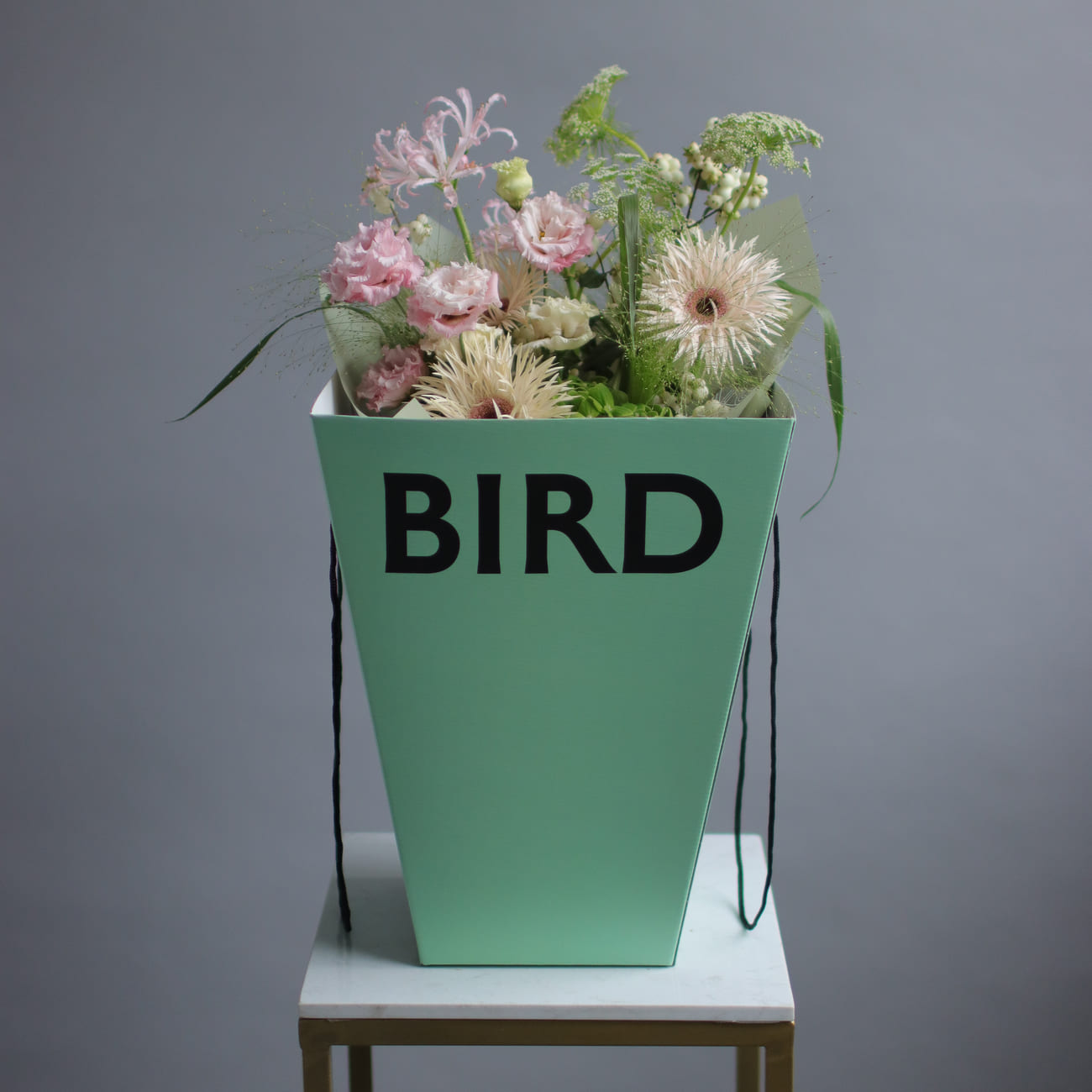 We pack bouquets in stylish branded boxes with lids for all weather protection (heat, cold, wind or rain - order a bouquet no matter the weather!). We also include instructions on how to care for a bouquet and a product to prolong the life of flowers.