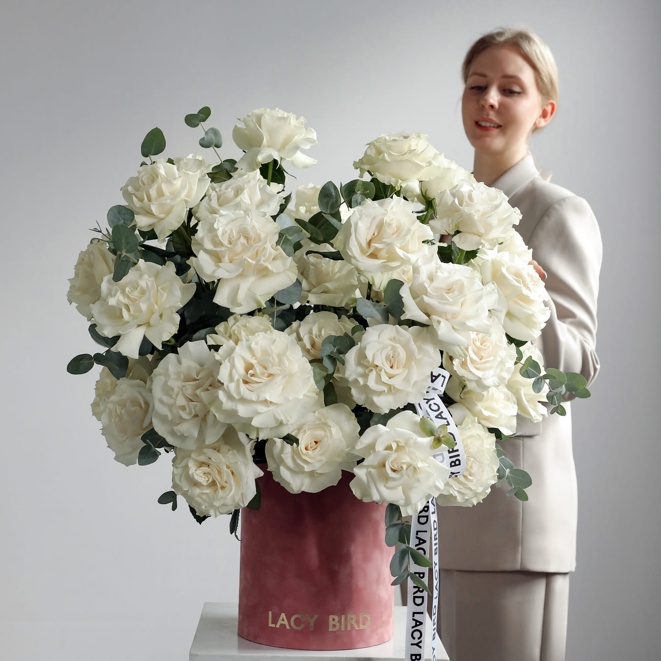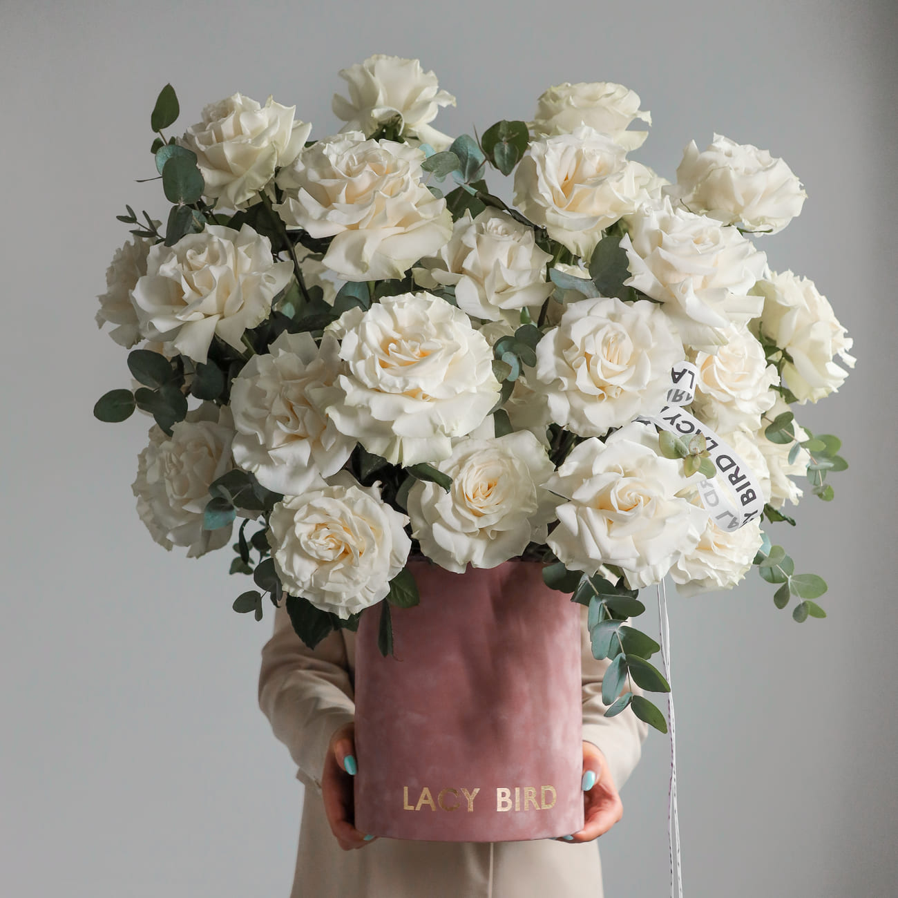 We pack bouquets in stylish branded boxes with lids for all weather protection (heat, cold, wind or rain - order a bouquet no matter the weather!). We also include instructions on how to care for a bouquet and a product to prolong the life of flowers.