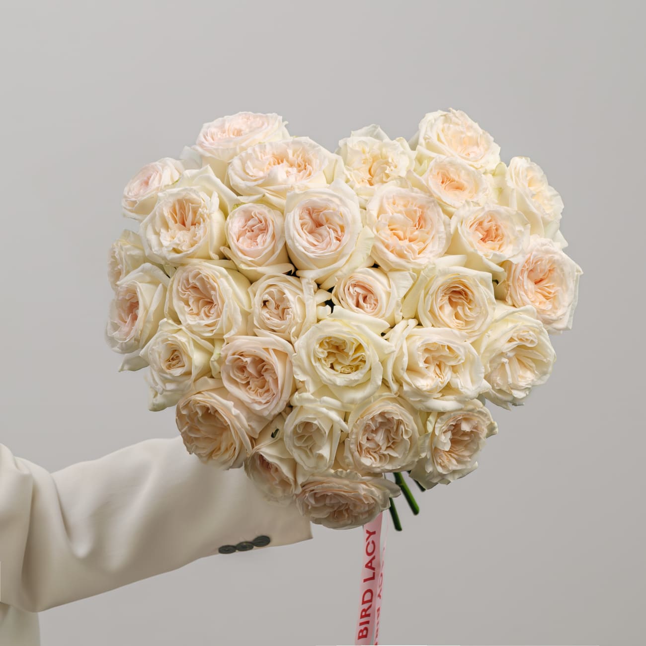 The fresh flowers from Lacy Bird are delivered in original packaging. Remove the packaging and place the flowers in a vase. We recommend not cutting the ribbon tying the flowers to keep the shape of the bouquet.
