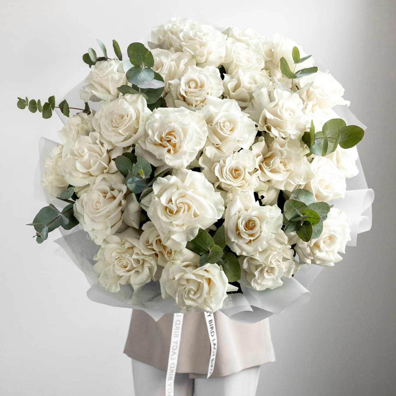 The fresh flowers from Lacy Bird are delivered in original packaging. Remove the packaging and place the flowers in a vase. We recommend not cutting the ribbon tying the flowers to keep the shape of the bouquet.