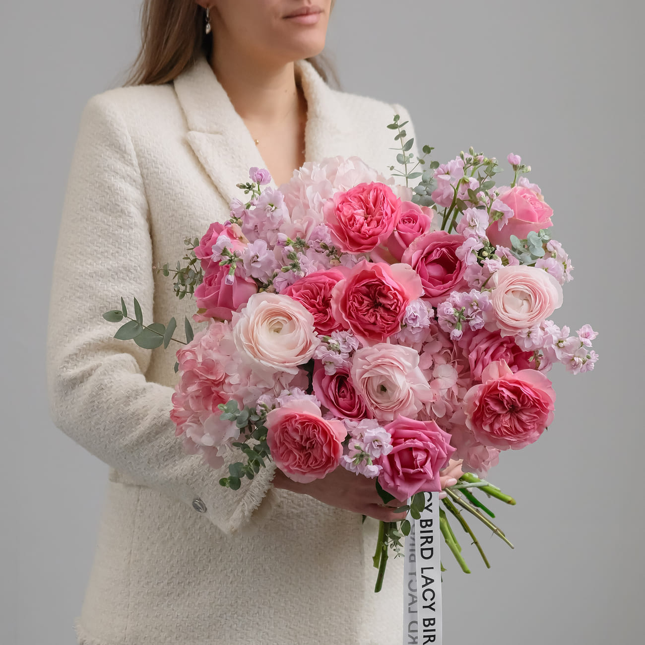 The fresh flowers from Lacy Bird are delivered in original packaging. Remove the packaging and place the flowers in a vase. We recommend not cutting the ribbon tying the flowers to keep the shape of the bouquet.