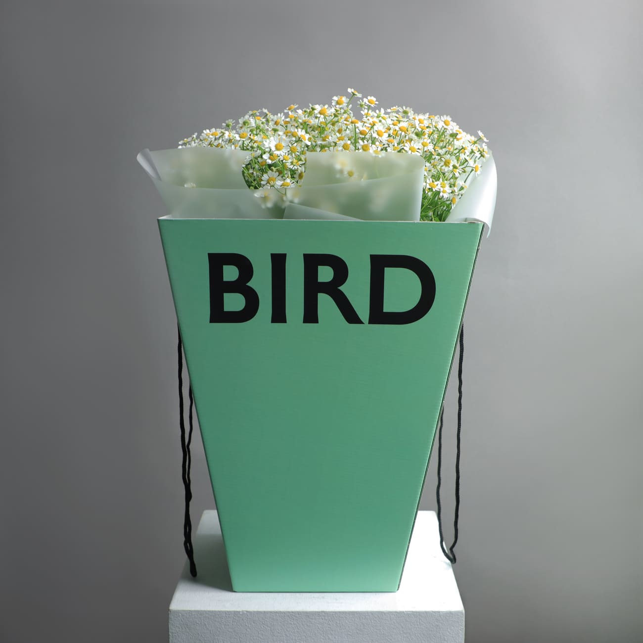 We pack bouquets in stylish branded boxes with lids for all weather protection (heat, cold, wind or rain - order a bouquet no matter the weather!). We also include instructions on how to care for a bouquet and a product to prolong the life of flowers.