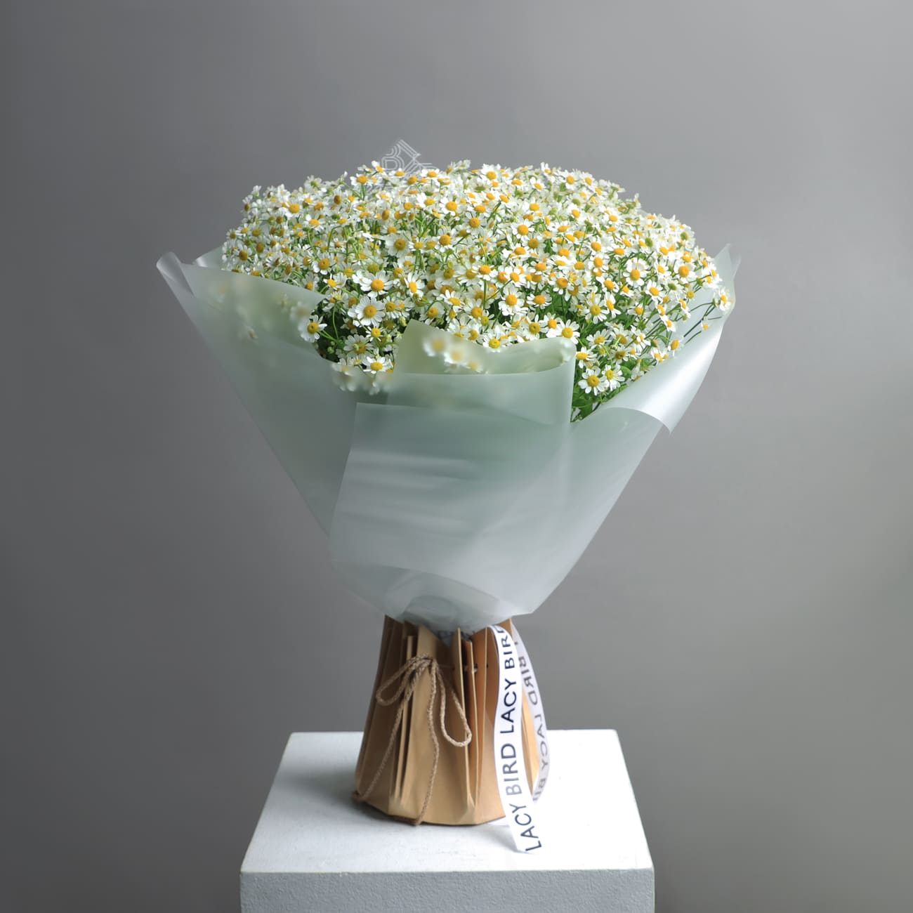 The fresh flowers from Lacy Bird are delivered in original packaging. Remove the packaging and place the flowers in a vase. We recommend not cutting the ribbon tying the flowers to keep the shape of the bouquet.