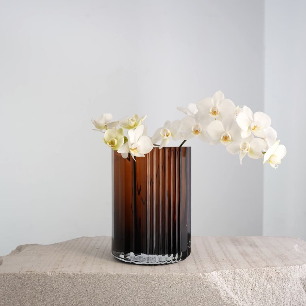 Ваза насыщенного шоколадного оттенка с выразительным рельефным узором, добавляющая интерьеру теплоту и фактурность.