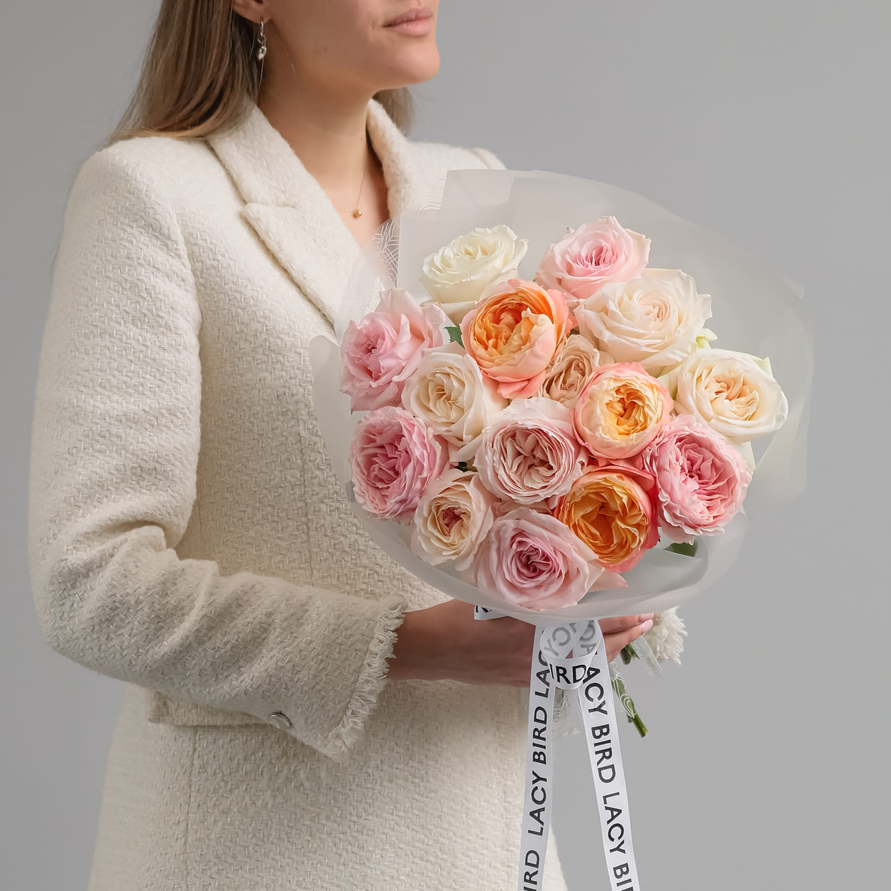 Нежный микс пионовидных роз